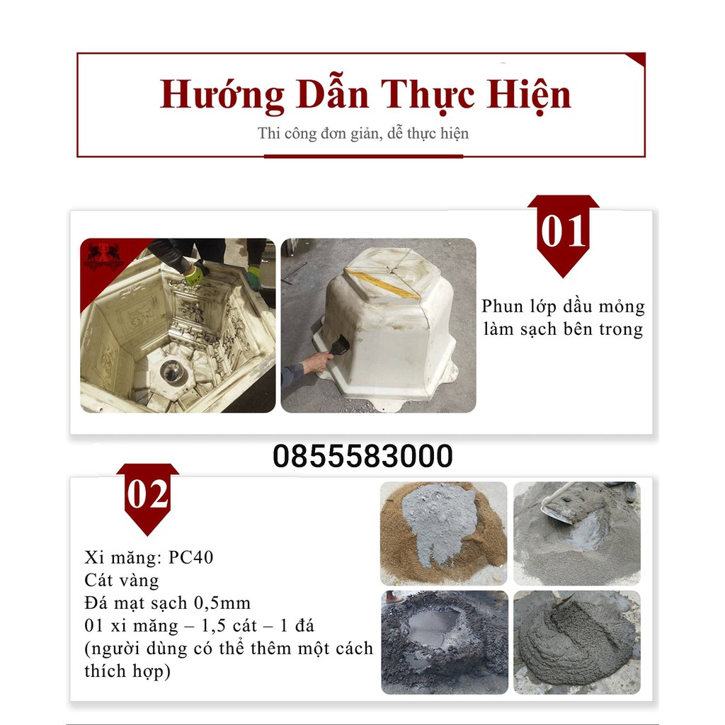 7. Khuôn sau khi đổ 24 giờ đến 48 giờ (tùy loại khuôn to nhỏ và vào thời tiết) có thể tháo khuôn ngoài.