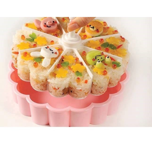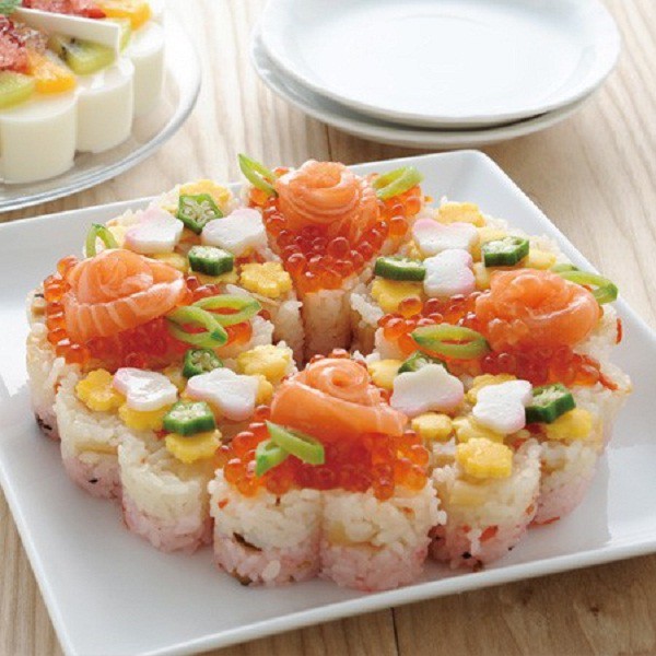 Đáy của khuôn là hình trái tim, sushi đúc là rất dễ thương.