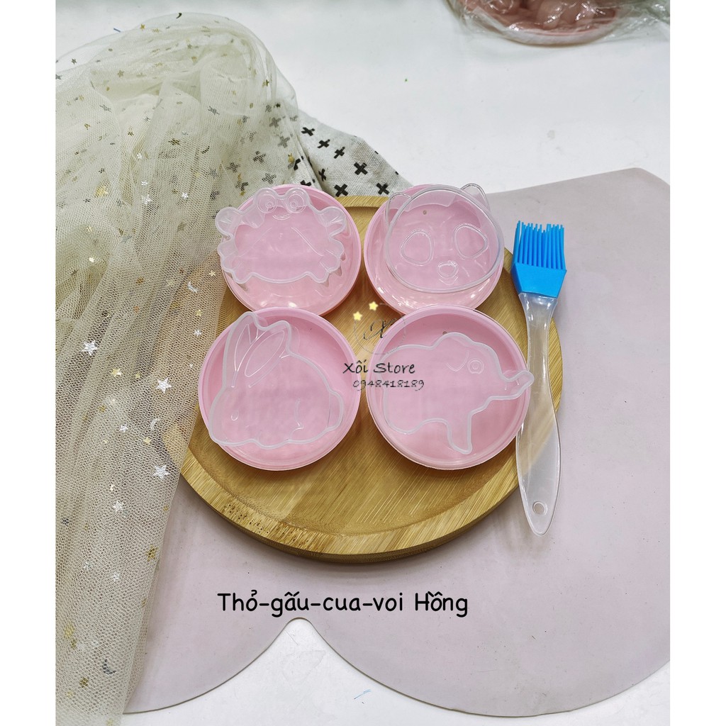 Khuôn hấp trứng, làm bánh cho bé (bộ 4 khuôn tặng kèm chổi silicon quét dầu) Thỏ-gấu-Cua-cún Hồng