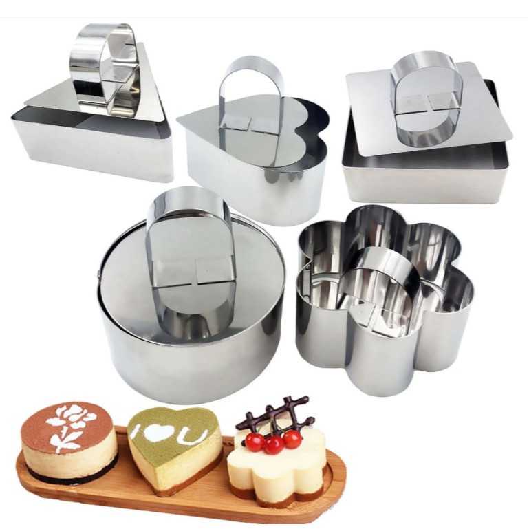 Khuôn Inox Không Đáy Tròn-Vuông-Trái-Tim-Tam Giác Loại Nhỏ Làm Bánh Tiramisu, Mousse, thạch, pudding,Charlotte Ring Mini