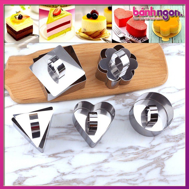 Giới thiệu Khuôn Inox Không Đáy Tròn-Vuông-Trái-Tim-Tam Giác Loại Nhỏ Làm Bánh Tiramisu, Mousse, thạch, pudding,Charlotte Ring Mini