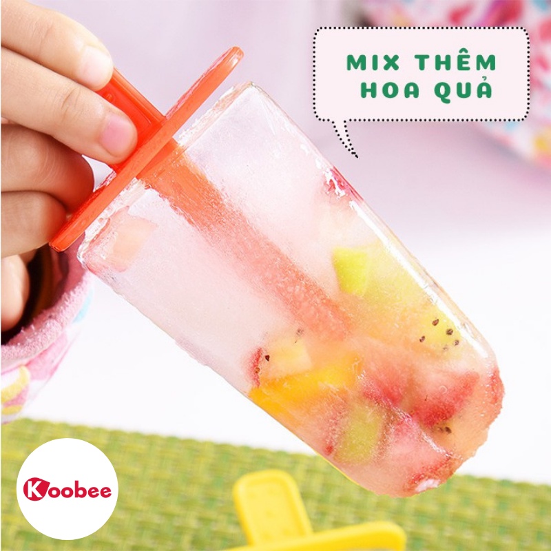 Khuôn kem 4 que có nắp tiện dụng làm tại nhà tái sử dụng nhiều lần KooBee NB16
