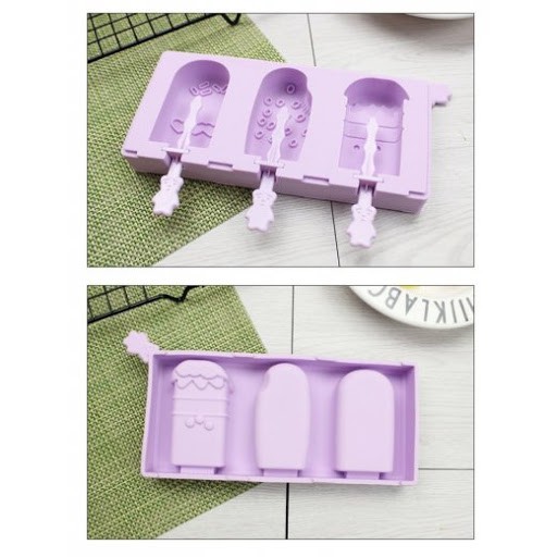 Khuôn kem silicon siêu hot - tặng kèm 50 que gỗ và nắp( giao mẫu ngẫu nhiên ) và giao màu ngẫu nhiên
