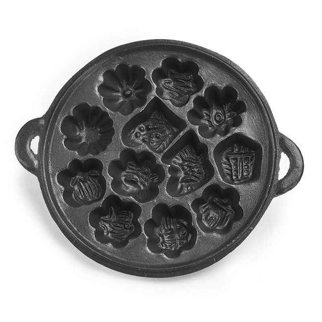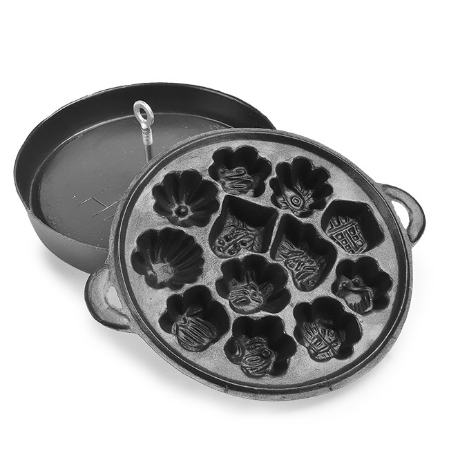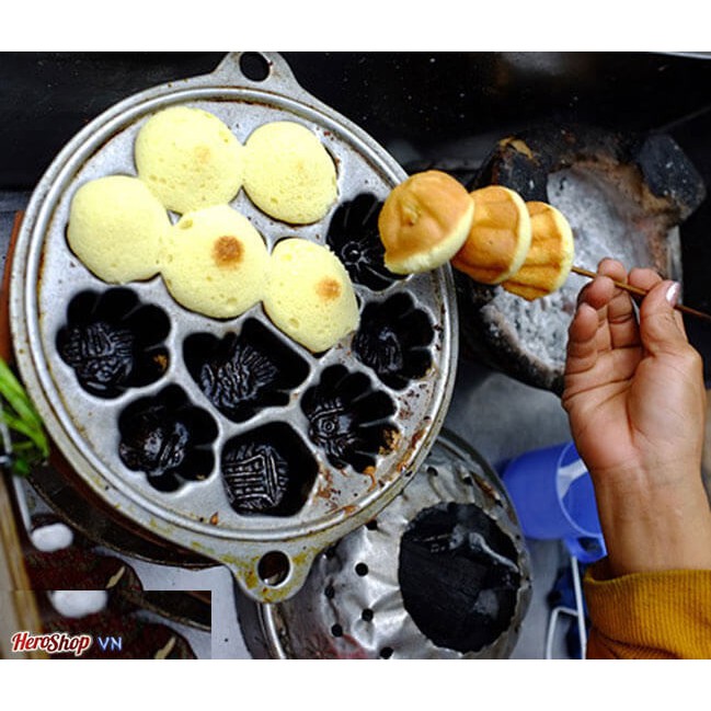 Chất liệu bằng gang giúp ban dễ dàng nướng ra được những chiếc bánh lớp ngoài giòn tan và dễ dàng vệ sinh.