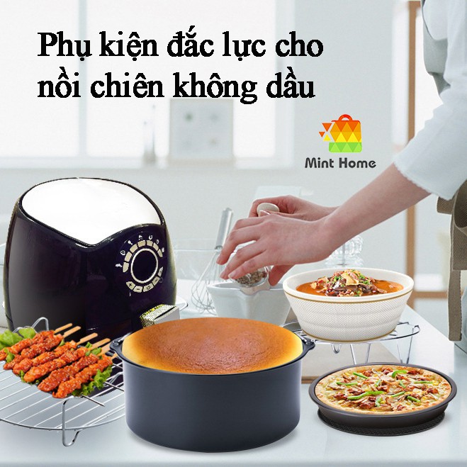 Khuôn làm bánh, khay tròn nướng thịt, pizza, trứng phủ chống dính hàng tách lẻ từ bộ phụ kiện nồi chiên không dầu