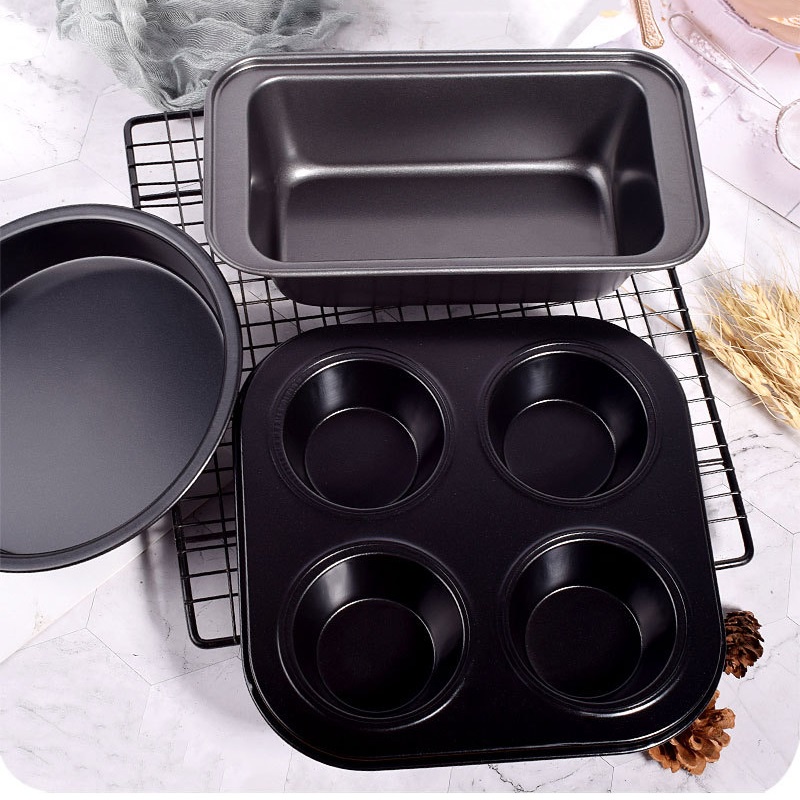 Bộ 5 khuôn làm bánh chống dính bao gồm các sản phẩm:1️⃣ Khuôn cupcake 4 lỗ: 18x18x6cm