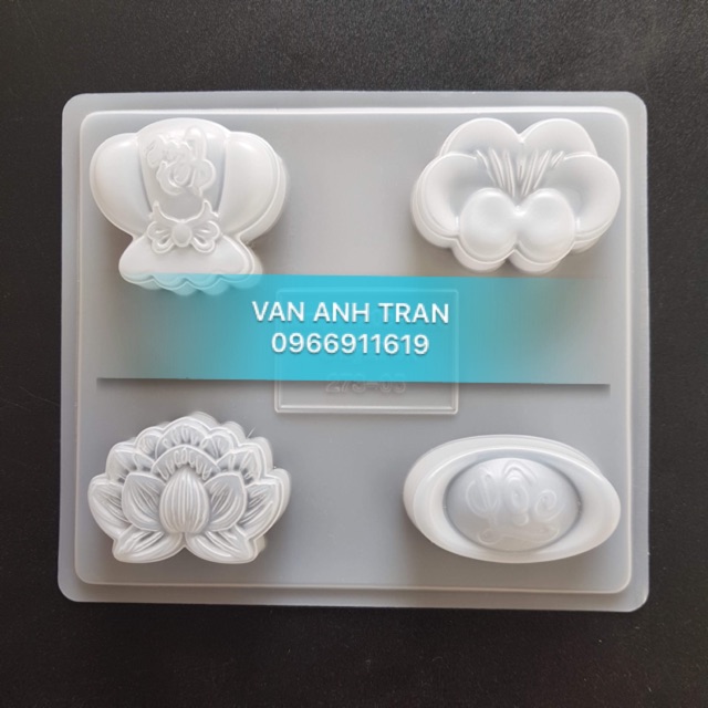 Khuôn làm bánh rau câu, bánh nướng dẻo 30 gamKhuôn làm rau câu trung thu Phúc- Lộc- Thọ - Tài viền chuỗi tiền.