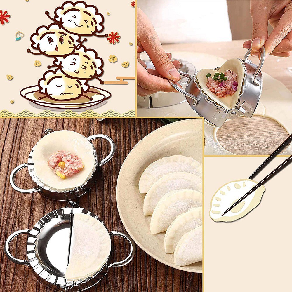 Khuôn làm bánh xếp, há cảo, sủi cảo tôm thịt, bánh bột lọc huế, khuôn làm bánh cho bé bằng inox 304 thép không gỉ cao cấpDụng cụ tạo hình các loại bánh từ bột mỳ, bột gạo rất dễ sử dụng.