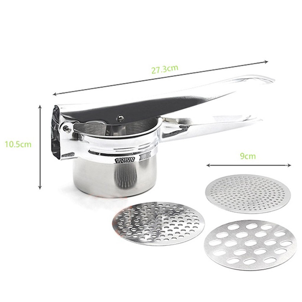 - Dụng cụ nghiền khoai tây, làm bún được thế kế thông minh, dễ sử dụng với 3 vỉ khuôn inox có lỗ phù hợp giúp bạn làm ra nhiều sản phẩm như ý.