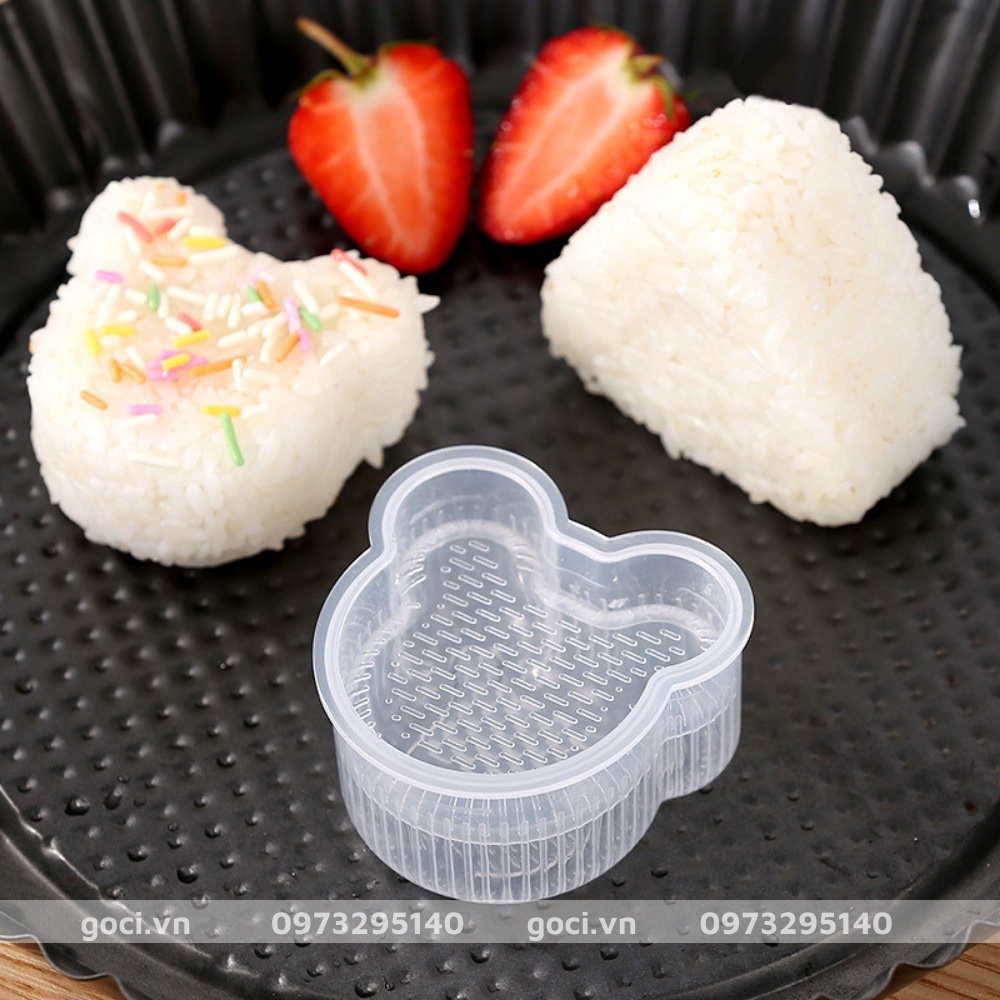 Khuôn làm cơm bento, ép cơm nắm origini sáng tạo ngộ nghĩnh cho bé thích thú mỗi bữa ănKHUÔN LÀM CƠM NẮM BENTO với 6 hình dạng dễ thương gồm tam giác , chuột mickey, bông hoa, trái tim.... giúp tạo hình trứng, cơm, bánh thành hình đẹp mắt một cách nhanh chóng và thuận tiện nhất.