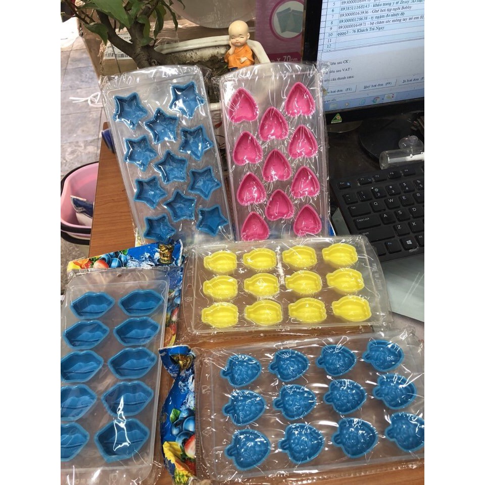 Khuôn làm đá, thạch nhiều hình (TL.12582)Mặt khuôn bằng nhựa, đáy khuôn bằng silicon nên rất dễ lấy thạch hoặc đá...
