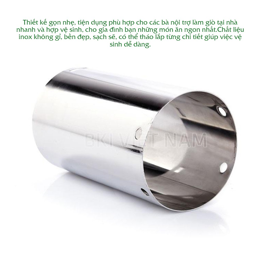 - Chất liệu inox cao cấp: Khuôn làm giò được làm hoàn toàn từ inox cao cấp vừa chống gỉ, an toàn vệ sinh vừa thuận tiện vệ sinh và bảo quản. Ngoài ra, khuôn còn được thiết kế lỗ hổng ở đáy, giúp mỡ được thoát ra ngoài dễ dàng trong suốt quá trình làm giò.