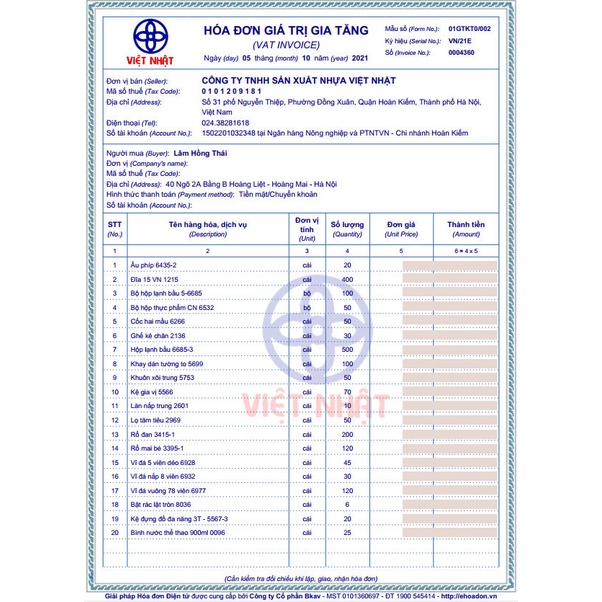 Xuất xứ: Công ty TNHH sản xuất nhựa Việt Nhật