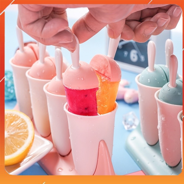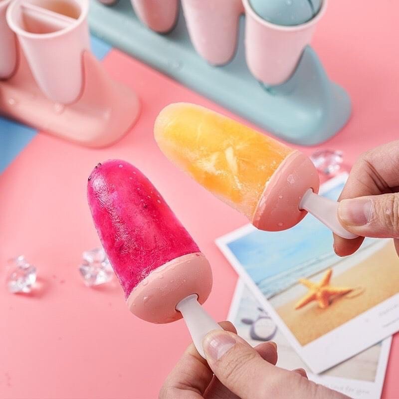 -Mỗi khuôn làm kem đều có phần que giúp bạn dễ dàng nhấc được kem ra khỏi khuôn sau khi đã đông đá cứng.