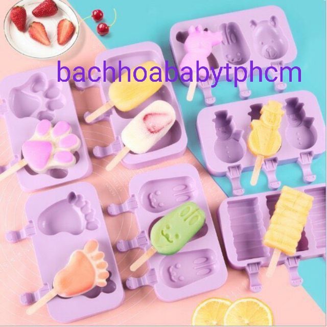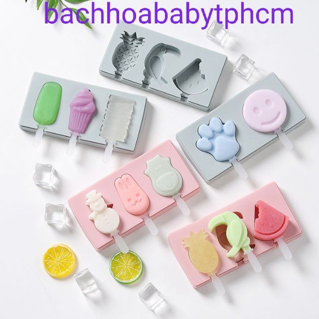 Khuôn làm kem bằng silicon (tặng 50 que gỗ )