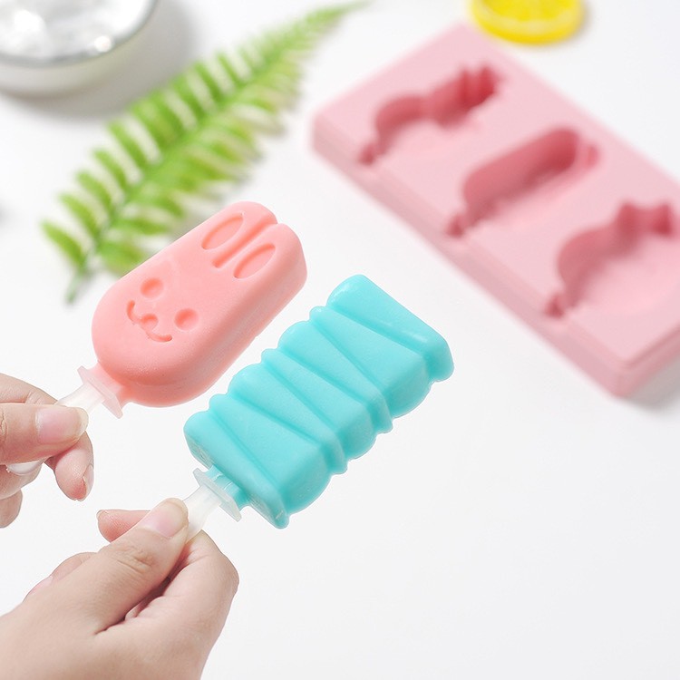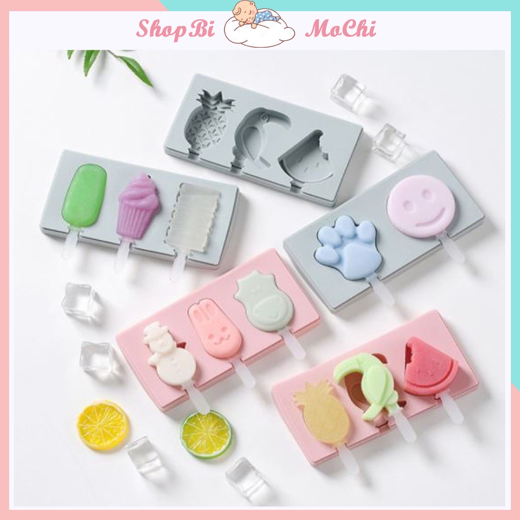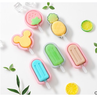 - Chất liệu: khuôn là silicon mềm dẻo, an toàn; que kem bằng nhựa PP an toàn cho bé