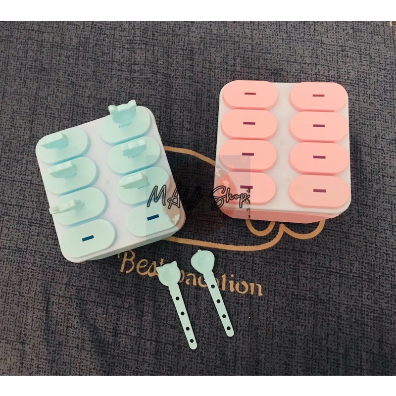 Khuôn Làm Kem Lúa Mạch 8 Que An Toàn - Kiểu Dáng Sang Trọng - Khuôn kem có nắp đậy vệ sinh