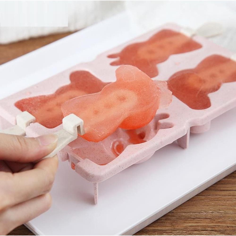 Khuôn làm kem Silicon 3 hình thú Tặng 50 que gỗ