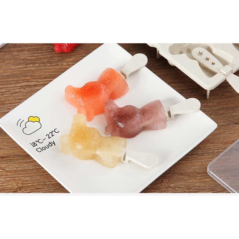 Giới thiệu Khuôn làm kem Silicon 3 hình thú Tặng 50 que gỗ