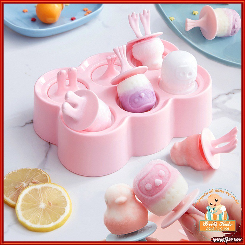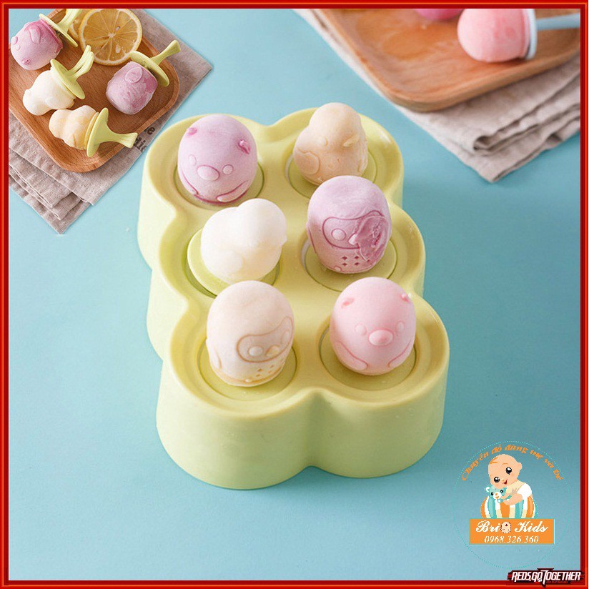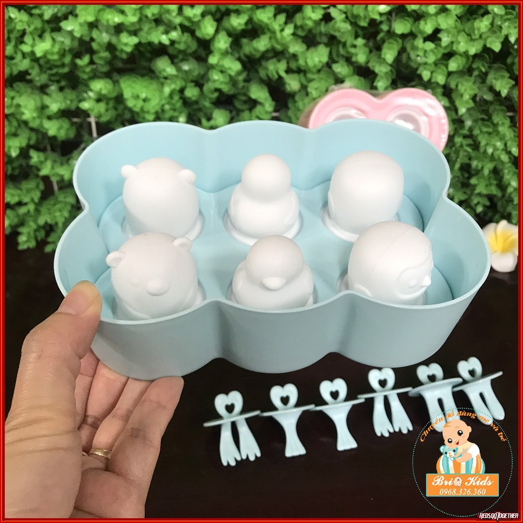 Brio Kids Shop về khuôn làm kem cho bé yêu nè các mẹ ơi!!! Bên ngoài đã thấy cực kỳ xinh yêu rồi mẹ ạ ^^- Khuôn kem silicon gồm 6 ô, 6 que, mỗi ô là một hình con vật dễ thương nha