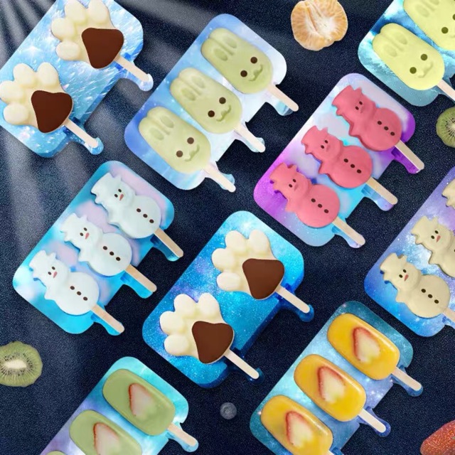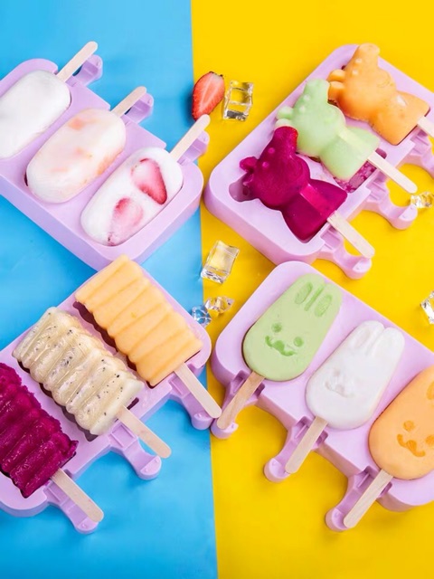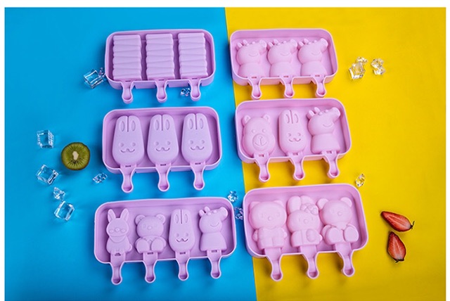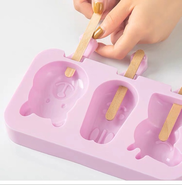 Khuôn làm kem silicon kèm 50 que gỗHình ảnh ngộ nghĩnh giúp các mẹ có những chiếc kem đẹp mắt cho bé yêu