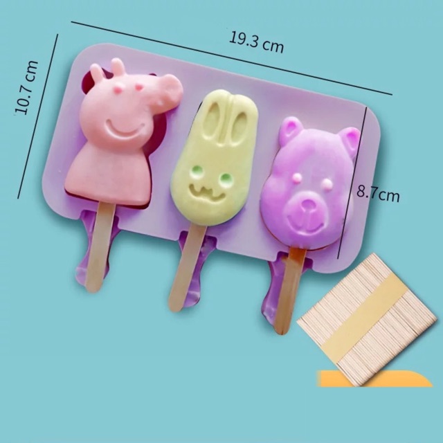 Khuôn làm kem silicon có nắp mỏng kèm 50 que gỗ hoặc 3 que nhựaHình ảnh ngộ nghĩnh giúp các mẹ có những chiếc kem đẹp mắt cho bé yêu