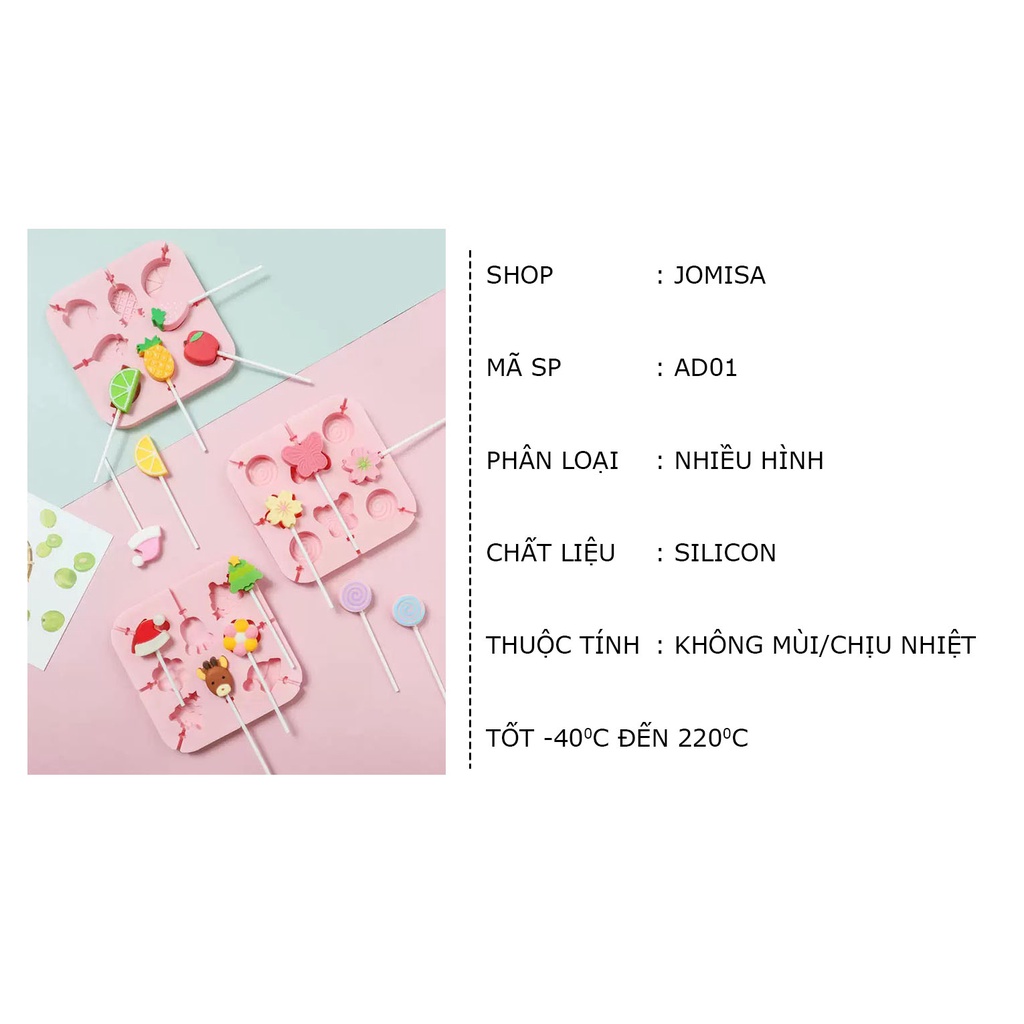 Giới thiệu Khuôn làm kẹo mút silicon cho bé nhiều hình xinh xắn dễ thương JOMISA AD01