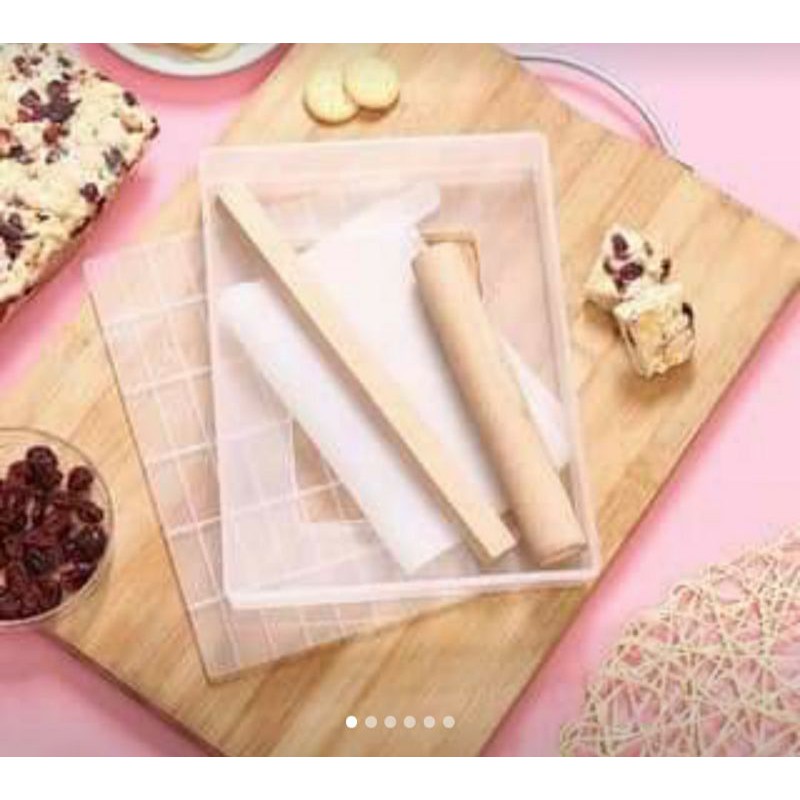 1 bộ khuôn 1 khuôn đế lời, 1 tấm silicon cán mặt, 2 thanh cán gỗ hình tròn và vuôn