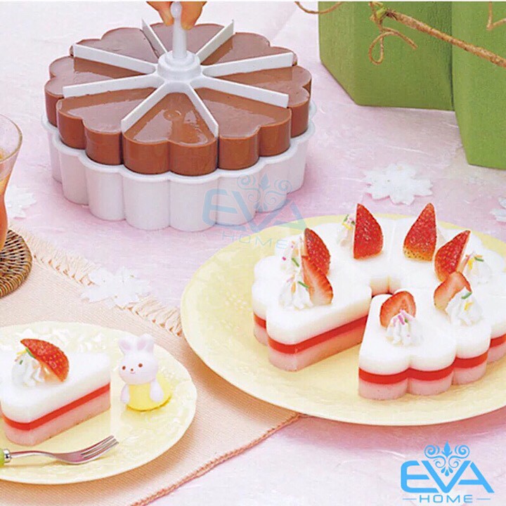 - Khuôn làm bánh với thiết kế hình trái tim, bông hoa mới lạ và dễ thương, mang lại tính thẩm mỹ cao cho các món ăn của gia đình bạn. Bạn sẽ có được những miếng rau câu mát lạnh, giòn ngọt cùng hình dáng độc đáo, mà cách thực hiện lại rất đơn giản với chiếc khuôn đổ rau câu tiện dụng này.
