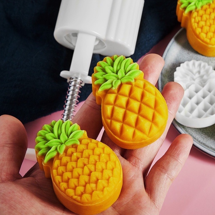 Khuôn làm bánh lò xo hình quả dứa, trái thơm 50grQuy cách: 01 khuôn nhấn + 2 mặt quả dứa / thơm