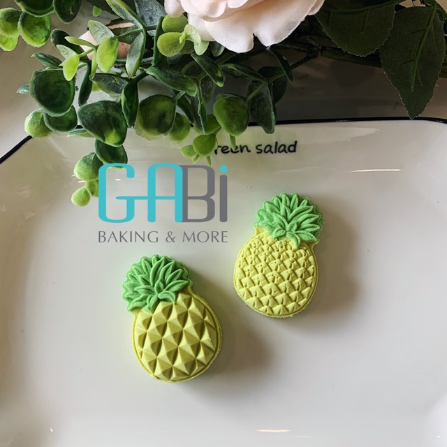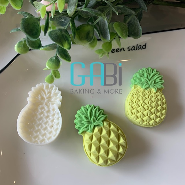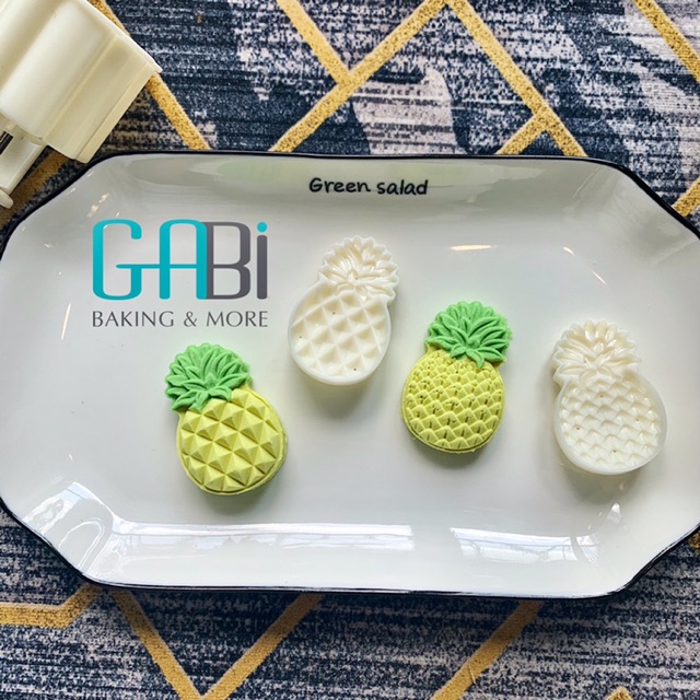 Khuôn gồm 1 nhấn và 2-4 mặt hình quả dứa.Khuôn nhấn lò xo chất liệu nhựa, hoạ tiết sắc nét.