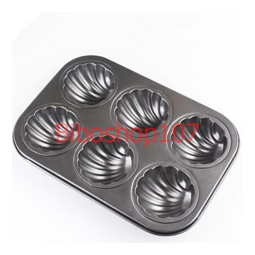 Thông tin sản phẩm:Khuôn nướng bánh chống dính hình vỏ sò 6 ô