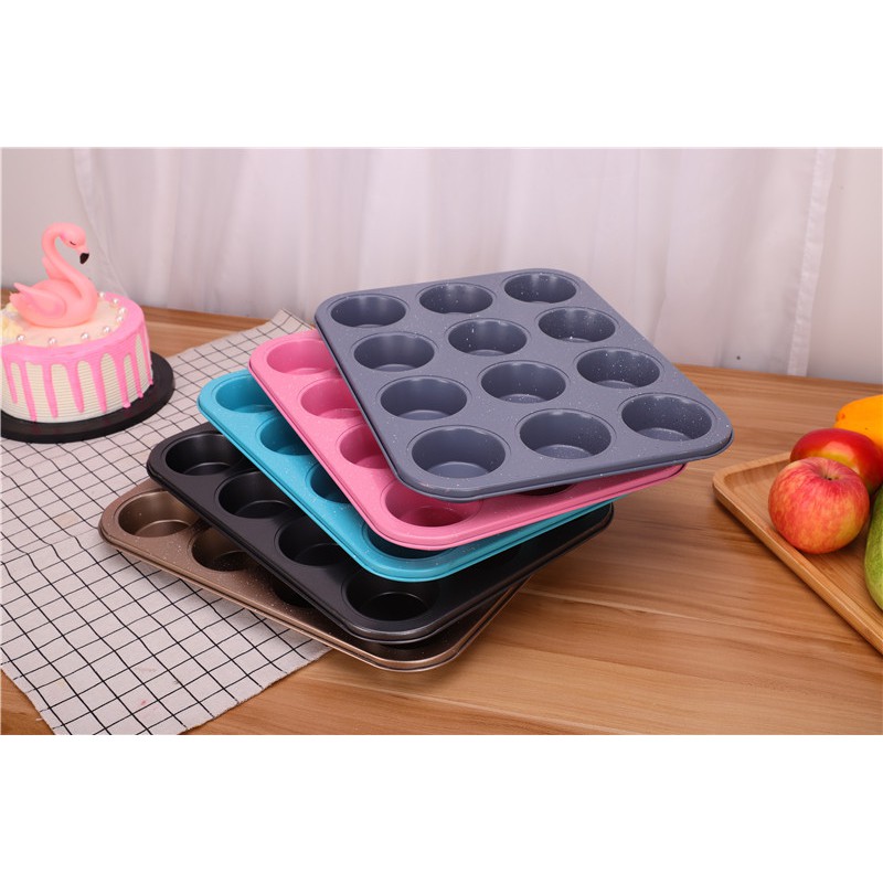 Giới thiệu Khuôn nướng bánh cupcake 6 ô to/ 12 ô to chống dính các màu