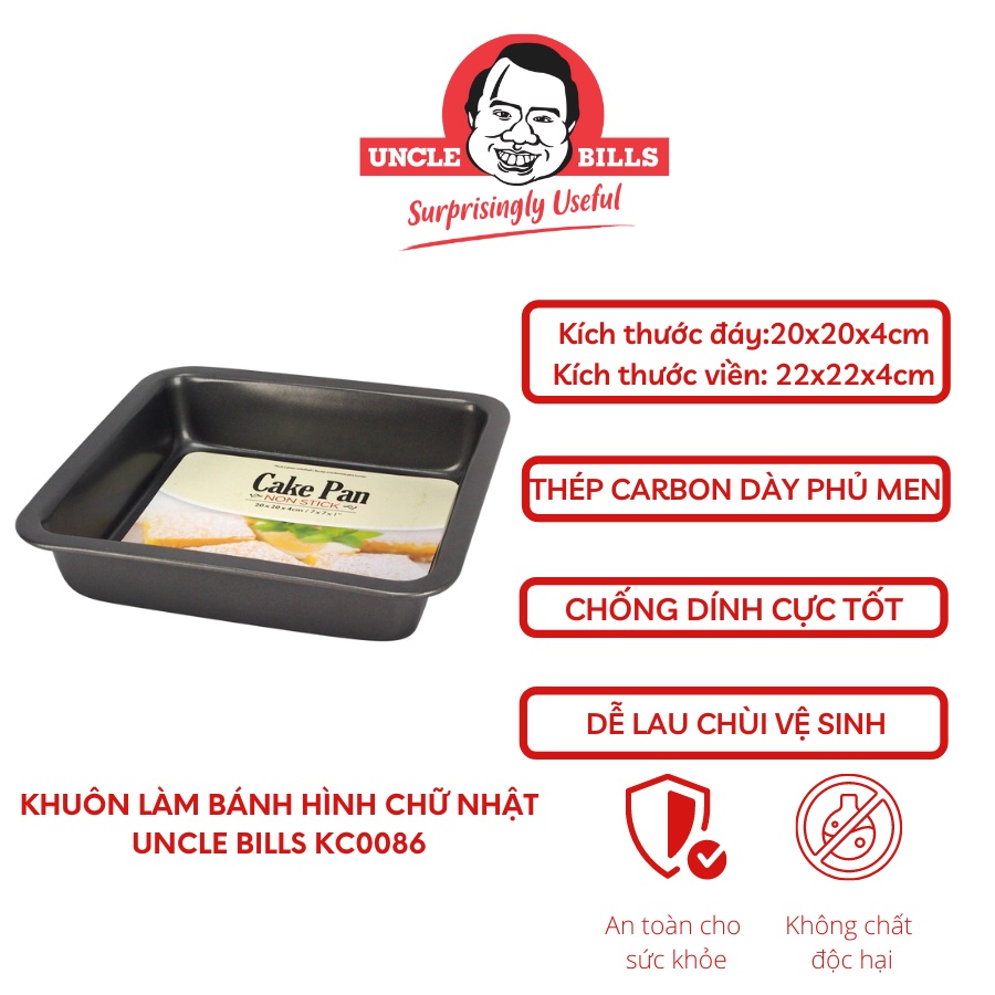 Giới thiệu [Mã BMBAU50 giảm 7% đơn 99K] Khuôn nướng bánh hình vuông Uncle Bills KC0086