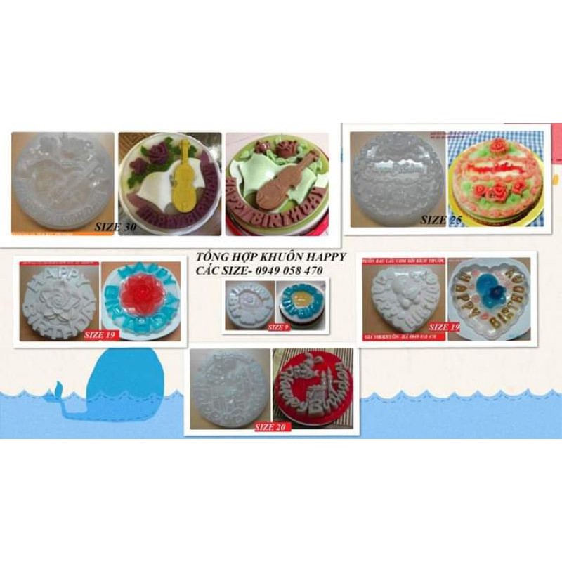 Giới thiệu Khuôn rau câu 3d chúc mừng sinh nhật, Happy Birthday size19-20 cm, nhiều mẫu