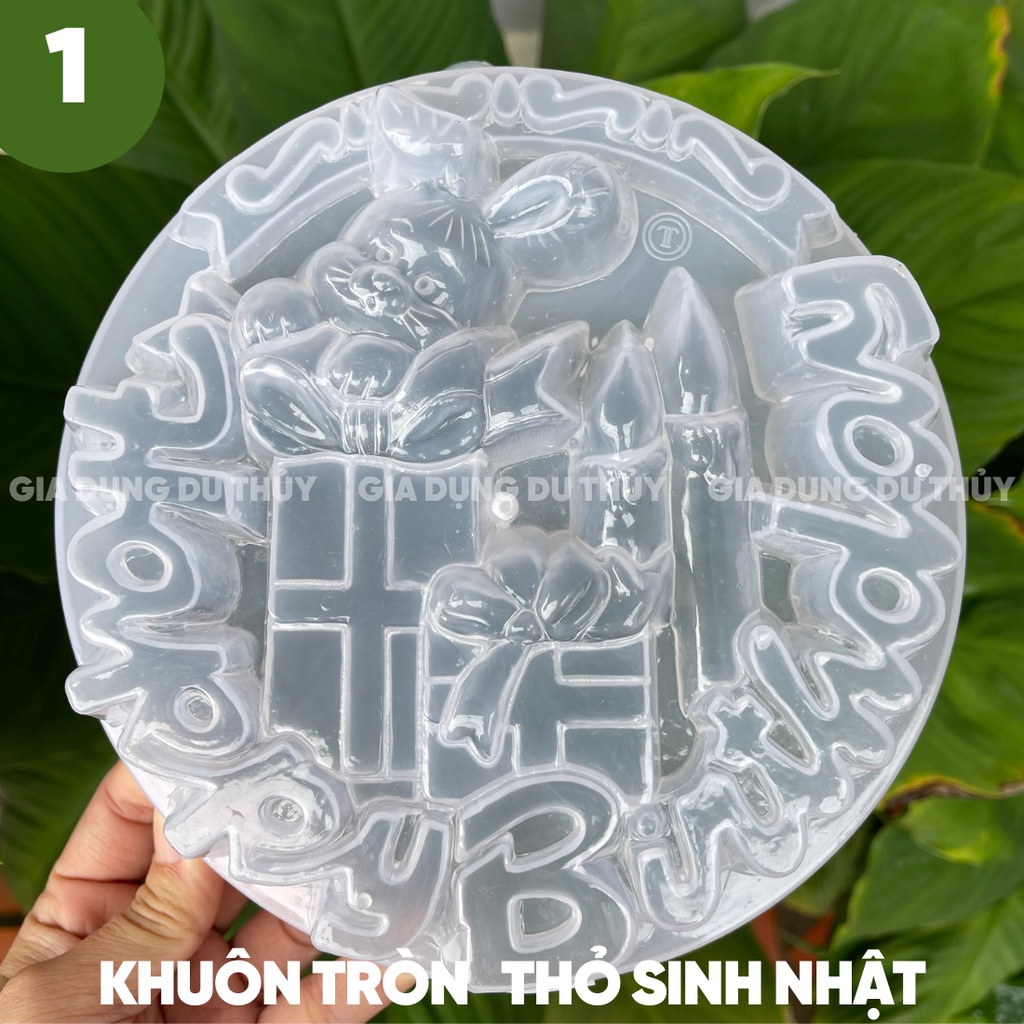 Khuôn rau câu 3d lớn tròn 20 cm, oval 21cm, hình hoa hồng, happy birthday, hoa sen, cá chép, trái tim, song hỷ, con ngựa