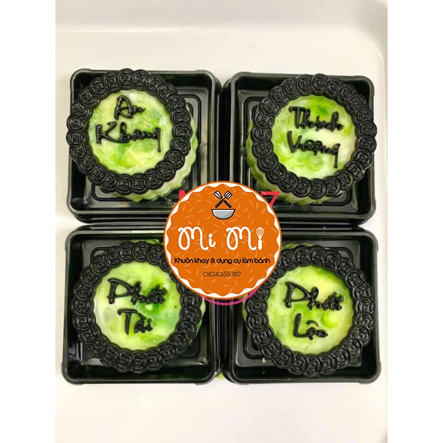 >>> kích thước mỗi bánh đường kính 9cm cao nhỉnh 3,5cm ----kích thước cả vỉ khoảng 25*25cm