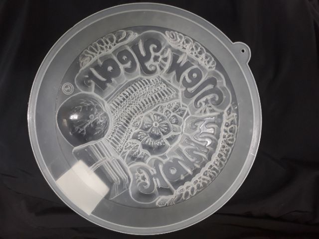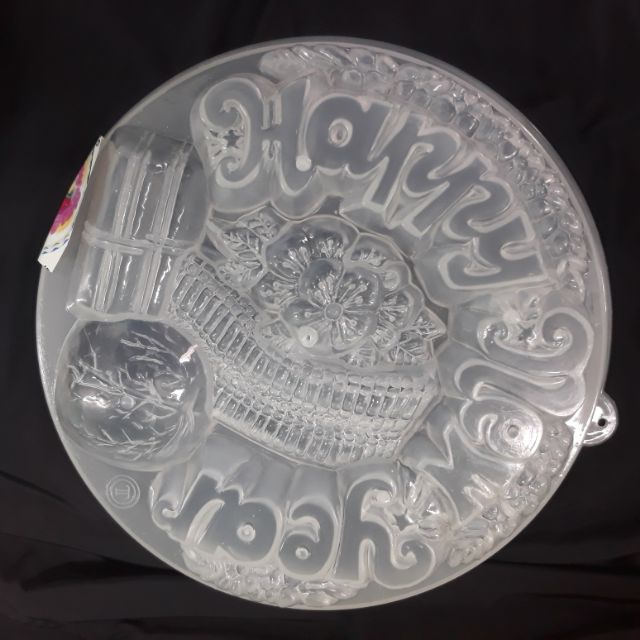 Khuôn chất liệu nhựa trong chữ Happy New Year và hoa văn ở giữaĐường kính 19cm , cao 4cm