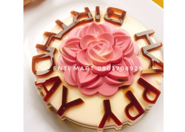 Hình dáng khuôn : tròn chữ HAPPY BIRTHDAY vòng ngoài, ở giữa hoa sen.