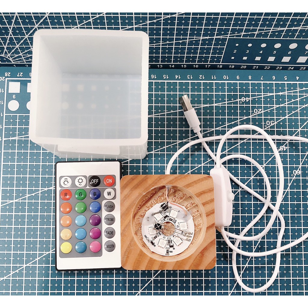 Bộ khuôn resin và đế gắn led làm đèn khối resin hình vuông