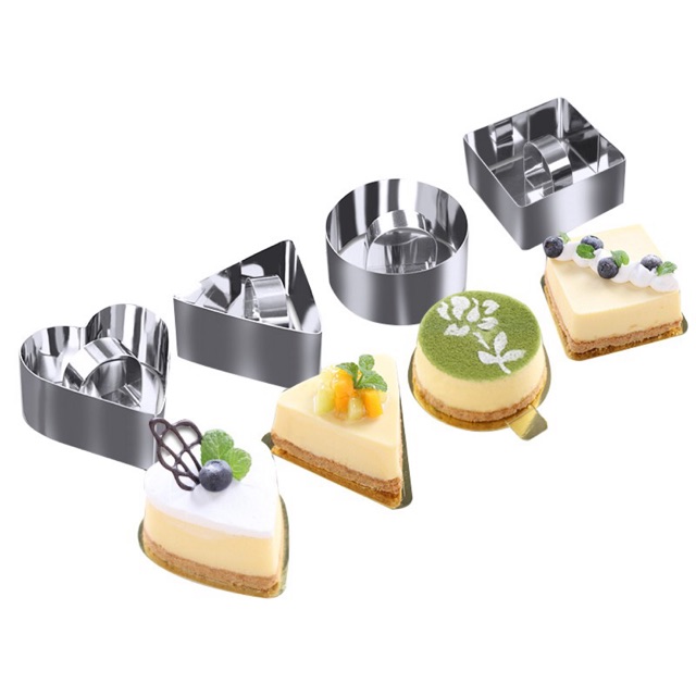 Khuôn mousse được làm bằng chất liệu inox không gỉ, gồm phần khuôn chính (ring) và phần đẩy bánh ra bên ngoài. Khuôn có thể dùng tạo hình cơm bento, bánh ngọt như mousse, cheesecake, hay các món tráng miệng.... Cần vệ sinh sản phẩm sạch sẽ sau khi sử dụng.Kích thước:
