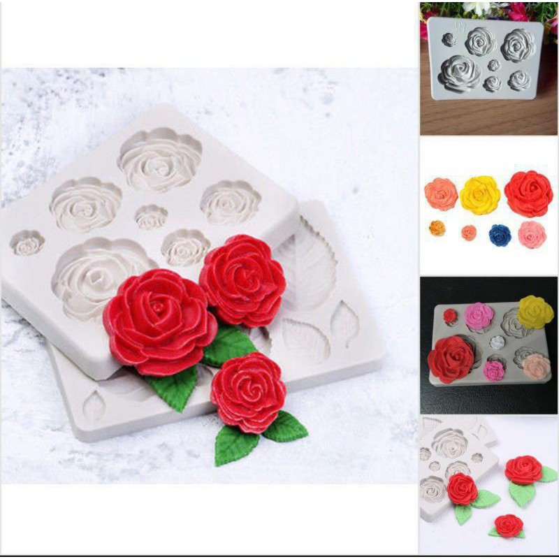 Khuôn silicon 3D vỉ 7 hoa hồngSử dụng tạo hình trong thạch rau câu, fondant, bánh trung thu hiện đại, socola....