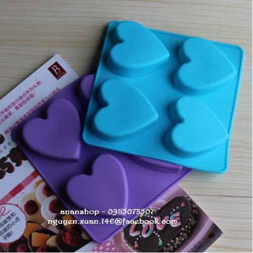 Khuôn silicon 4 timKhuôn đổ socola, kẹo chip chip, rau câu