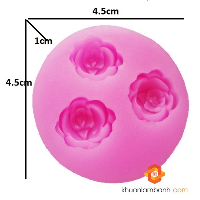 Khuôn silicon 4D 3 bông hoa hồng nhí dùng làm thạch rau câu, socola, nến, xà phòng,...Kích thước khuôn: đường kính 6.3cm x cao 1.8cm