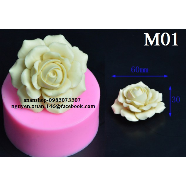 Khuôn silicon 4D hoa hồng M01Kích thước khuôn: 7*7*3.5cm