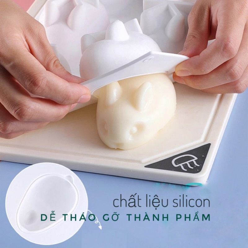 Khuôn silicon hình thỏ heo làm thạch pudding, mousse, làm bánh