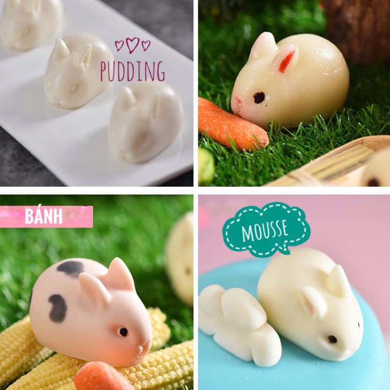 Giới thiệu Khuôn silicon hình thỏ heo làm thạch pudding, mousse, làm bánh
