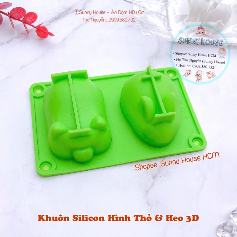 Khuôn silicon hình thỏ ngọc và heo 3D làm bánh, thạch, tàu hũ non, rau câu,...cho bé