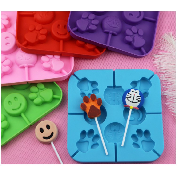 Khuôn Silicon Làm Kẹo Mút 8 Ô Nhiều Hình