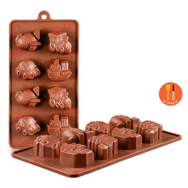 Giới thiệu Khuôn silicon làm thạch kẹo dẻo socola 8 xe tàu máy bay